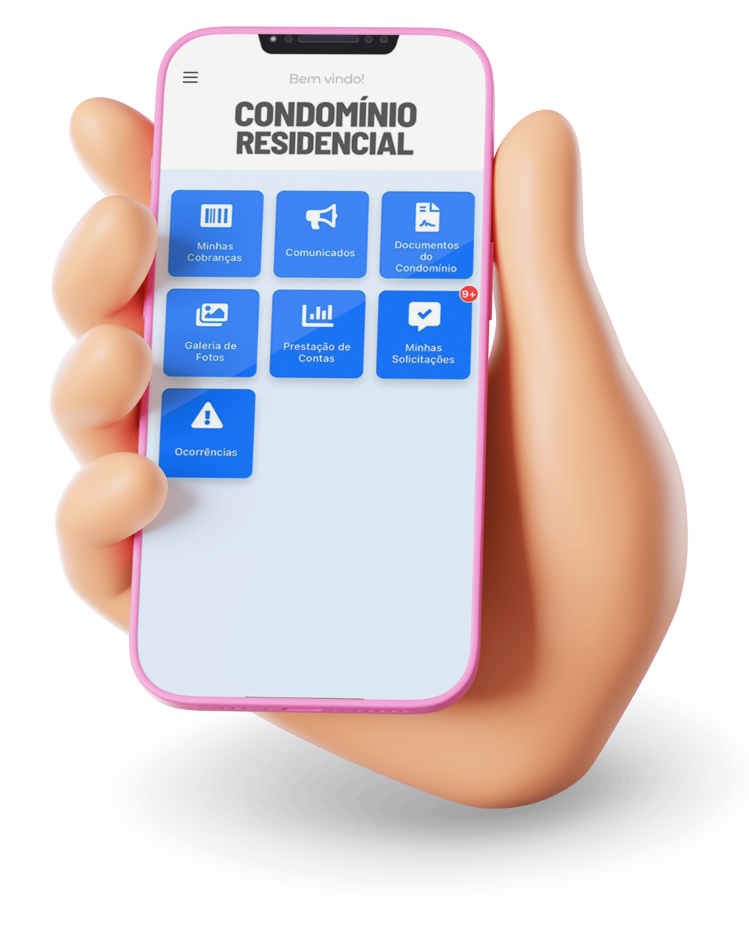 Na palma da sua mão, tudo que o condômino precisa: segunda via de boletos, comunicados, documentos e regras do condomínio, reservas de salão de festas e áreas comuns, além do registro de ocorrências e solicitações.